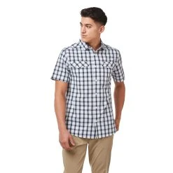Craghoppers Men’s Passos Short Sleeved Blue Navy Check Shirt RRP £50