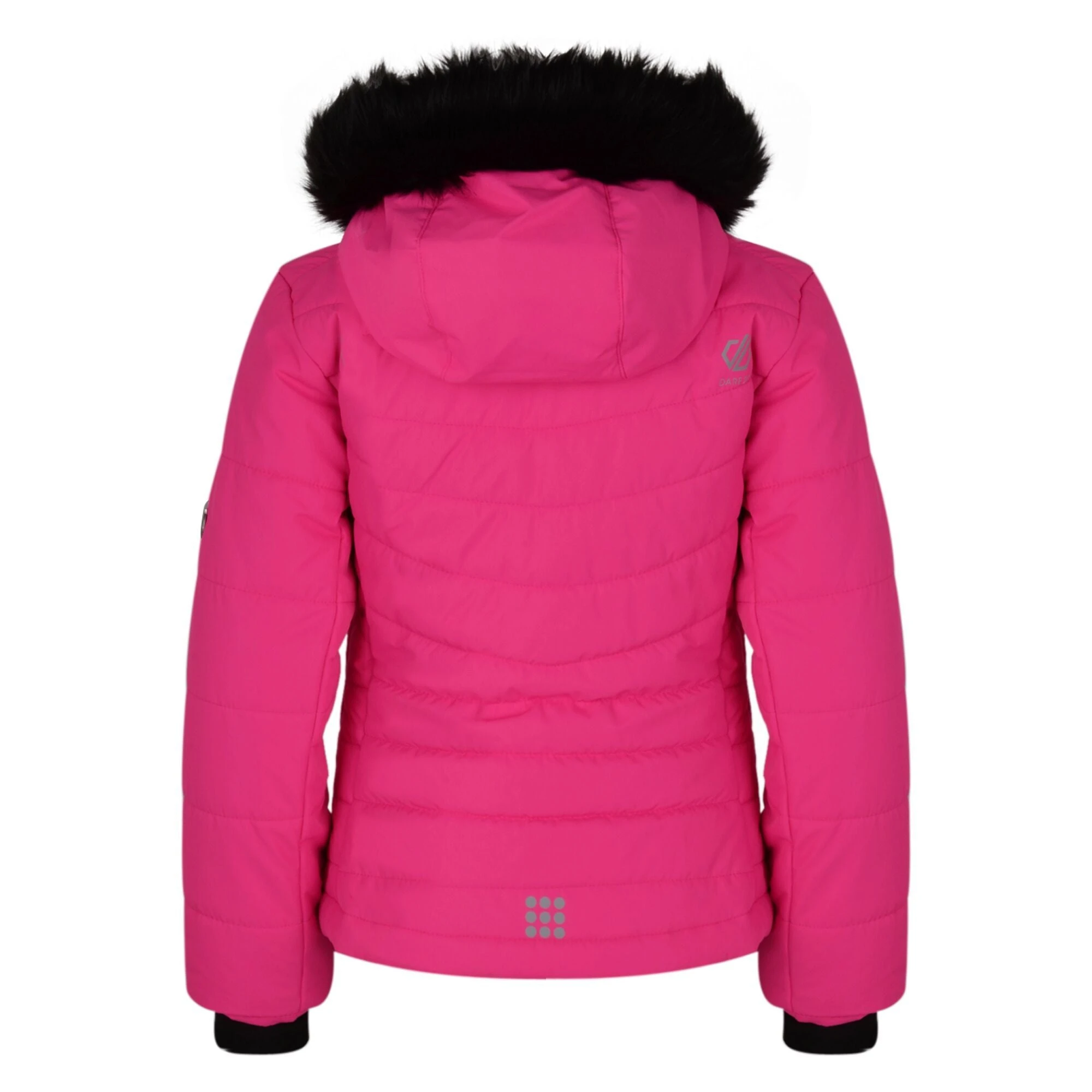 The Girl’s Dare 2b Predate Jacket is made of waterproof/breathable ARED 5000 fabric diamond quilted with warming fill. With a faux-fur trimmed hood and a powder blocking snowskirt.